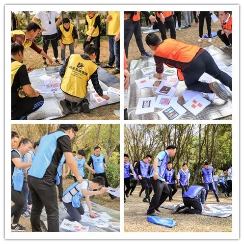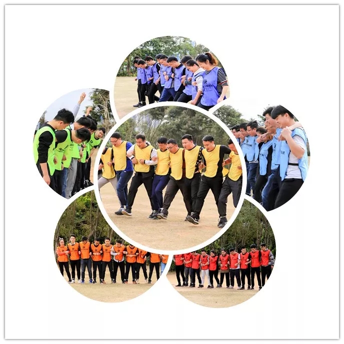 全隊的伙伴用綁腿繩將腳連在一塊,橫向一排,通過側行和前行規(guī)定的路線,在盡量少的時間內從起點到達重點。在這個項目中,團隊配合是至關重要的,如何調整自己與團隊的步伐,稱為團隊成功的關鍵。