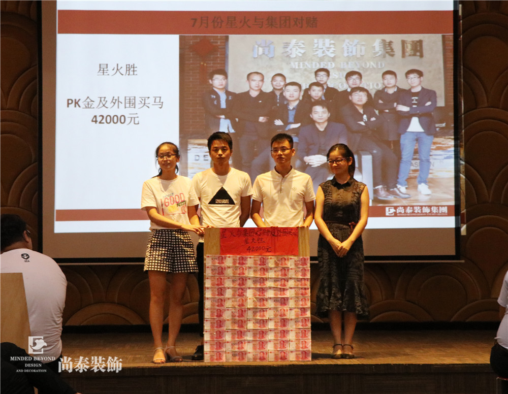 在贏得霸氣、標(biāo)桿榜樣的時(shí)刻,7月份各分公司業(yè)績(jī)PK及排名無(wú)疑牽動(dòng)著現(xiàn)場(chǎng)人員的心,尚泰裝飾設(shè)立為每個(gè)月份業(yè)績(jī)突出的分公司及團(tuán)隊(duì)授予榮譽(yù)和PK金作為獎(jiǎng)勵(lì),樹(shù)立標(biāo)桿和榜樣,以激勵(lì)大家再接再厲!