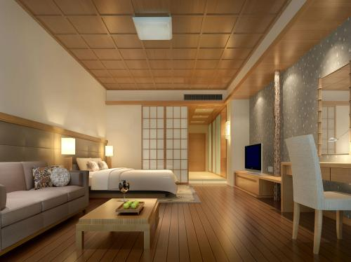 日式風(fēng)格酒店設(shè)計(jì)上講究空間的流動(dòng)感及分割感,不同的空間在設(shè)計(jì)上是一個(gè)整體。日式風(fēng)格裝飾材料多采用木、藤、麻等純天然的材料,講究素雅,給人寧?kù)o閑適的視覺(jué)體驗(yàn)。在顏色上多為原木色,木質(zhì)家具更顯得與世無(wú)爭(zhēng),適合休閑度假類的酒店裝修。