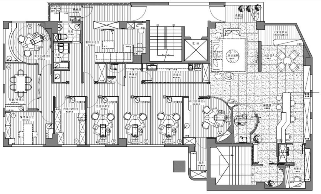 看牙醫(yī),對(duì)大人或小孩而言,通常都是可怕或害怕的經(jīng)驗(yàn),以牙醫(yī)診所為空間設(shè)計(jì)主要項(xiàng)目的九禾室內(nèi)設(shè)計(jì),為了改善這樣的感官,試圖在空間里注入主題或營(yíng)造不同氛圍,顛覆一般傳統(tǒng)牙醫(yī)診所的既定印象。這次挑戰(zhàn)的是位于新北市的牙醫(yī)診所,屬于兩層樓且高達(dá) 80 坪的大空間,于是設(shè)計(jì)師借由“線性”來貫穿空間,樓層相互串聯(lián)之馀,也透過不同弧度與高低起伏制造出流動(dòng)感。