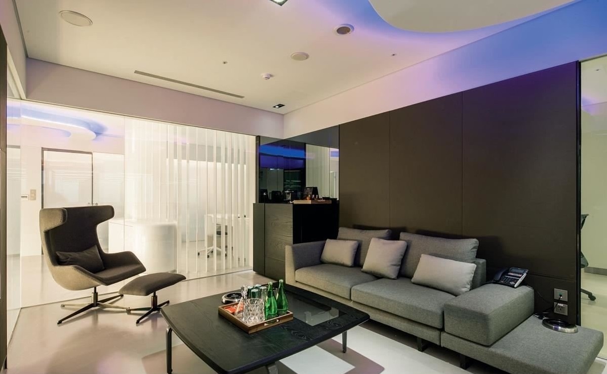 “商空設計不同于居家裝修,空間的焦點特色須更為鮮明、有驚喜感,帶出讓人印象深刻的企業(yè)特質?!毕蛟O計表示道。于是在此空間內,以大面積素白作為背景,隱喻胚布無雜質的基底,并巧妙加入圓弧流線、多彩燈光,不僅將六種企業(yè)色融入其中,更帶出了布料柔軟具層次的意象,色彩更可隨時彈性變換,不僅使辦公室多了繽紛意趣,更可迎合到訪客戶的企業(yè)色彩,打造賓至如歸的感受。