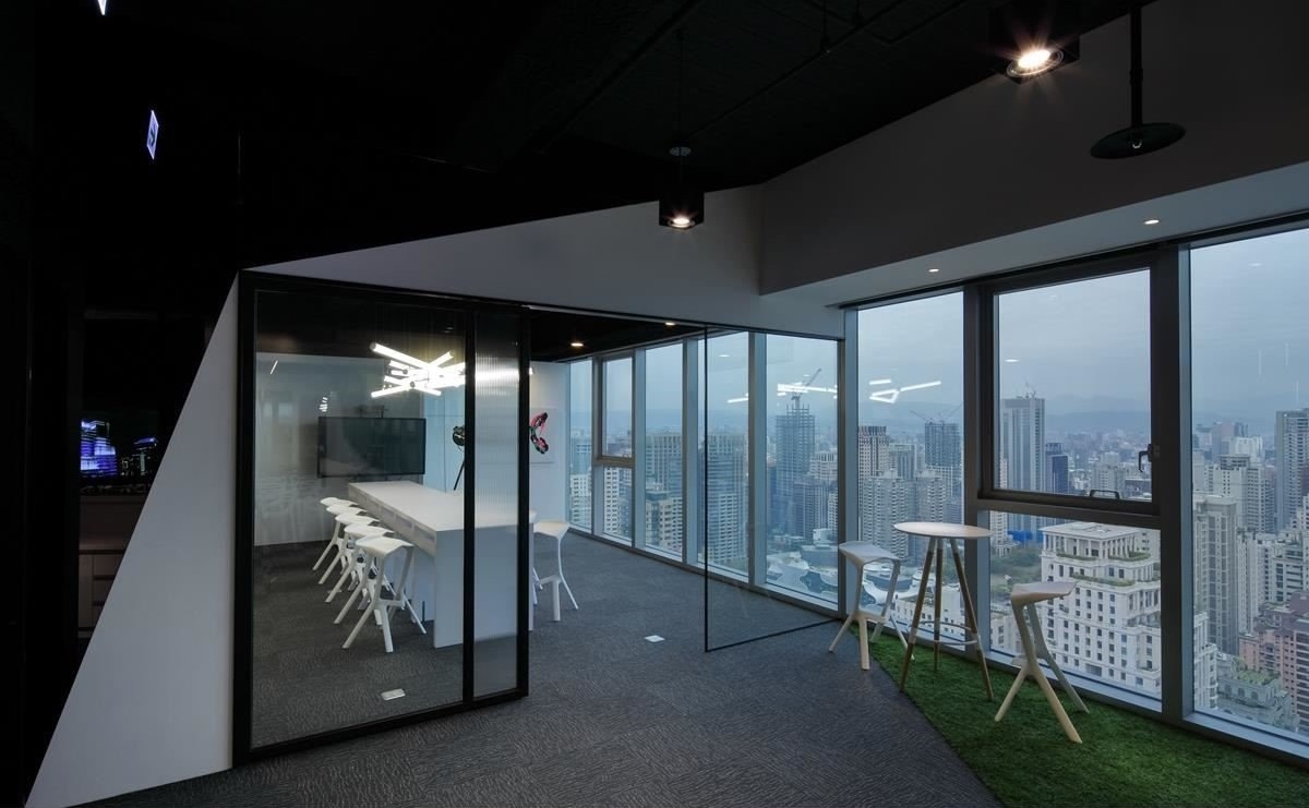 這是一個位于深圳的空中辦公空間,業(yè)主本身希望把企業(yè)精神:新穎開創(chuàng)、環(huán)境友善、open-minded…等放到設(shè)計之中,因此設(shè)計以多元使用著手,可任意變換型式使用的空間去做延伸。