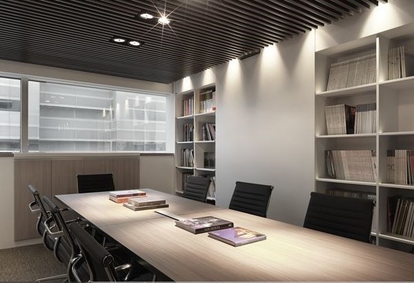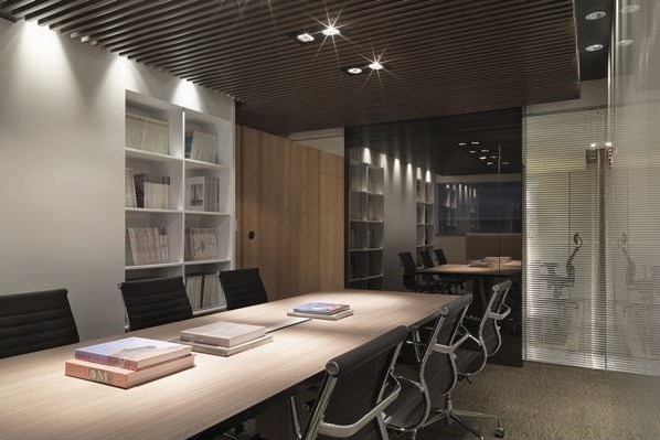 壁面結(jié)合大量的書柜體,內(nèi)嵌式的設(shè)計,更能有效運用空間,提升會議室的機能。
