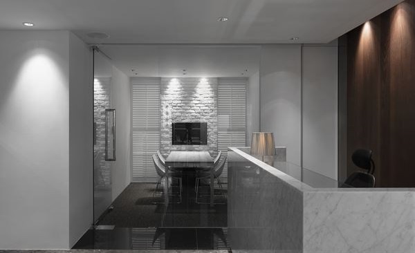 造訪 10 人會議室,白色的壁面搭上淺色木桌,溫潤而柔和的氣息,讓與會者,能以舒適的心境來投入研討,達到事半功倍的效果。另外再運用玻璃內(nèi)嵌電視的技法,達到隱藏電視的空間利用之效。針對 5 人會議室,設(shè)計師也運用白色為主視覺,再利用文化石墻來豐富空間特性,勾勒出設(shè)計的多面向?qū)哟巍?/span>