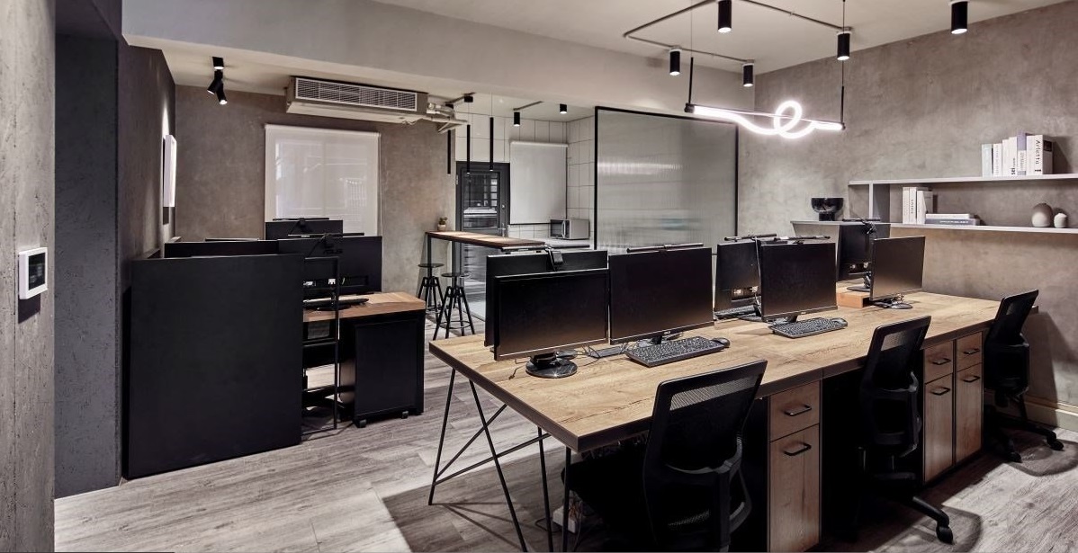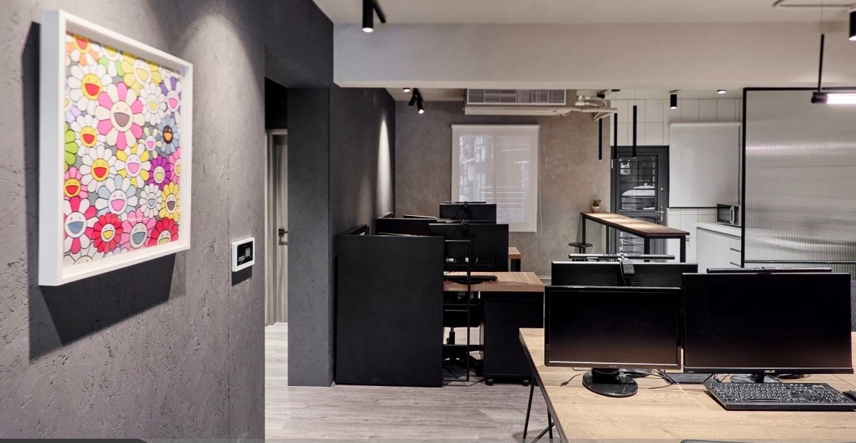 有輕食吧臺(tái)與悠哉陽(yáng)臺(tái)!老屋改造藝術(shù)辦公室,混搭工業(yè)風(fēng)個(gè)性與畫(huà)作的熱情