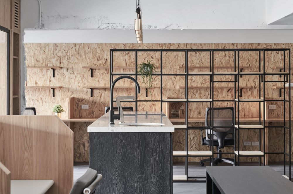 不想讓日日工作的空間顯得一成不變,最有效的方式莫過于從墻面玩變裝游戲,像是帶有斑爛木紋的OSB板材,能為室內(nèi)創(chuàng)造獨(dú)特風(fēng)格的端景,同時(shí)吸音;