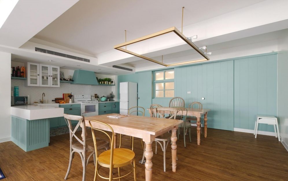 大大的鋼琴矗立客、餐廳之間,仿佛家就是舞臺(tái),無論是工作或生活隨時(shí)都有浪漫琴音相伴,搭配著鄉(xiāng)村風(fēng)空間風(fēng)格更是唯美,而一旁羅曼蒂克的湖綠色廚房則增添清新氣息。為了滿足上課或發(fā)表會(huì)時(shí)有眾多學(xué)生、家長等乘坐需求,無論是客廳或餐廳教學(xué)區(qū)都有大量桌椅,而開放格局也讓空間更顯舒適。