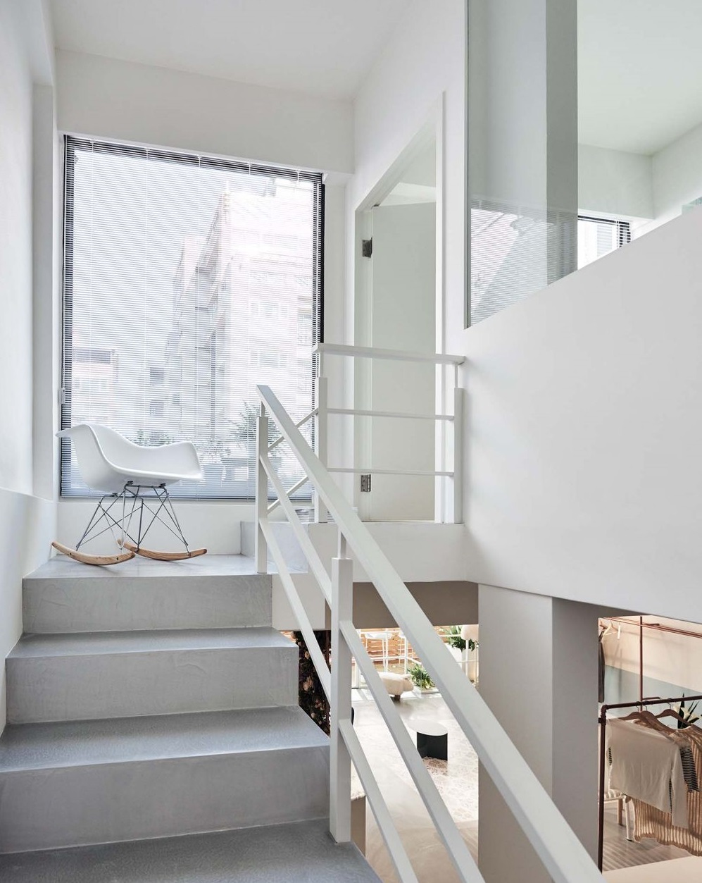 此處規(guī)劃為老板與老板娘辦公空間,同樣以白色為基調(diào),搭配簡(jiǎn)約燈飾加入鐵件線條延伸,發(fā)揮場(chǎng)域極簡(jiǎn)感。