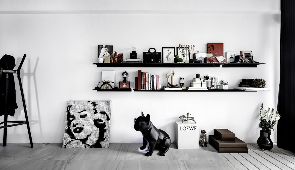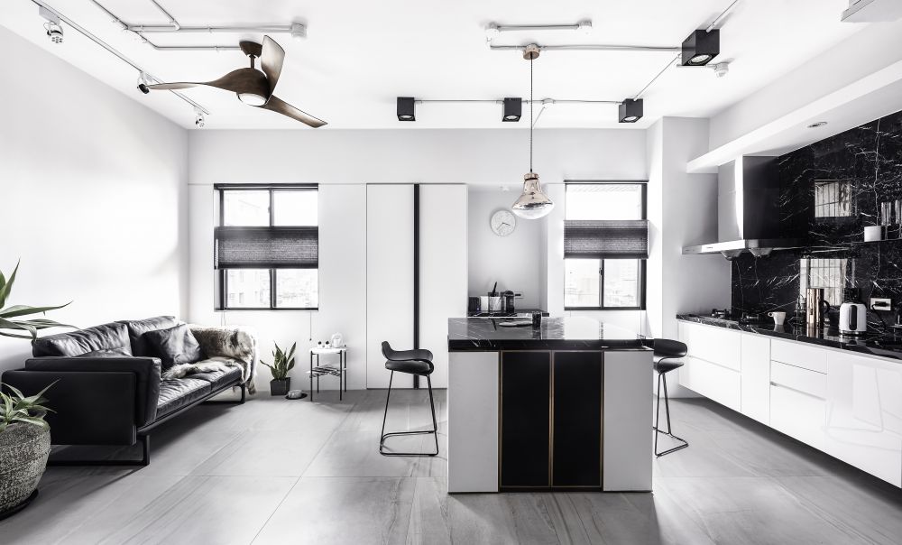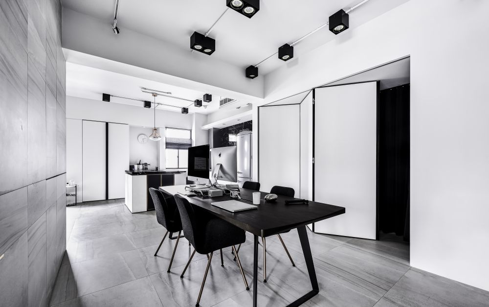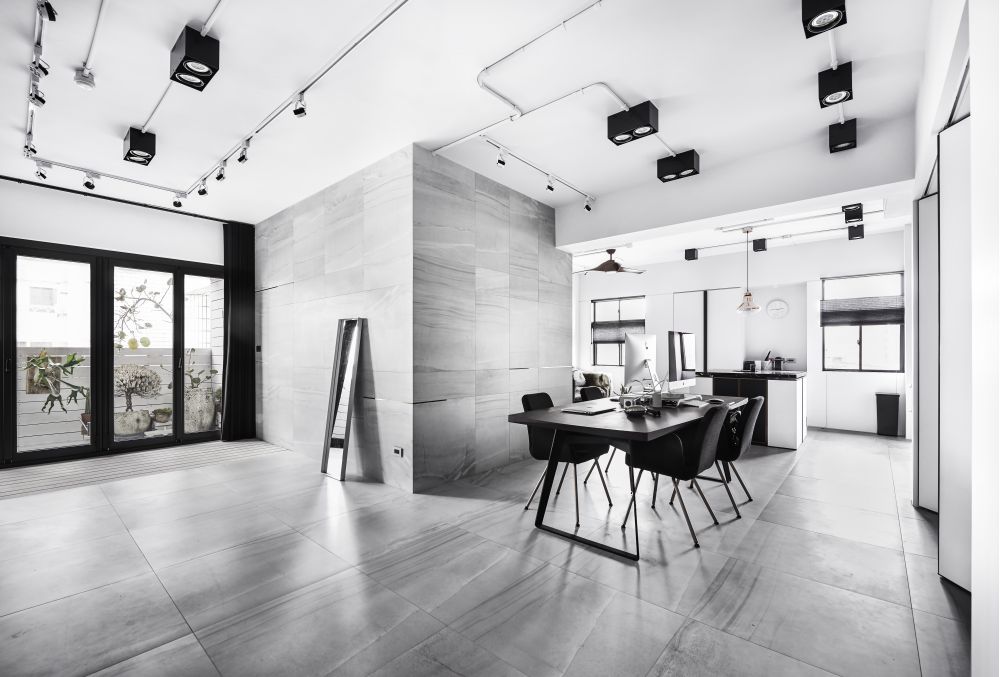 “將工作的生態(tài)融入空間中,結(jié)合攝影、更衣室、化妝臺(tái)有如小型的時(shí)尚伸展臺(tái)”氛圍設(shè)計(jì)總監(jiān)林英彥一語(yǔ)帶出整個(gè)空間的設(shè)計(jì)核心。從事時(shí)尚產(chǎn)業(yè)的一對(duì)夫妻,希望將品牌的風(fēng)格與個(gè)性帶進(jìn)自己的工作室同時(shí)融入生活中,于是造就了這個(gè)性鮮明、以黑、白、灰為主且住辦合一的空間。