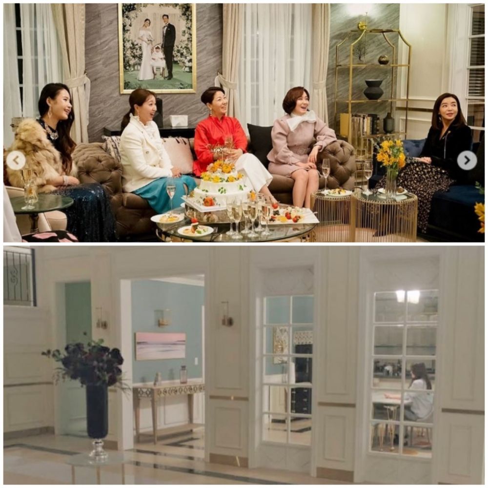 再來看看千金小姐申多景家的裝潢風(fēng)格,與正宮家有著明顯的差異,以白為主色調(diào)的古典風(fēng)格,空間里的天地壁以大理石材、線板勾勒,優(yōu)雅中多了高貴感。由于申多景年紀(jì)尚輕,在部分墻面上選用甜而不膩的馬卡龍色系妝點,可見她內(nèi)心仍是有一點點浪漫可愛的性格。如果有看劇的也會發(fā)現(xiàn),申多景家里搭配了不少皮草或繃布織品,家具上也運用了水晶和鐵件材質(zhì)來提升空間的華麗氛圍。