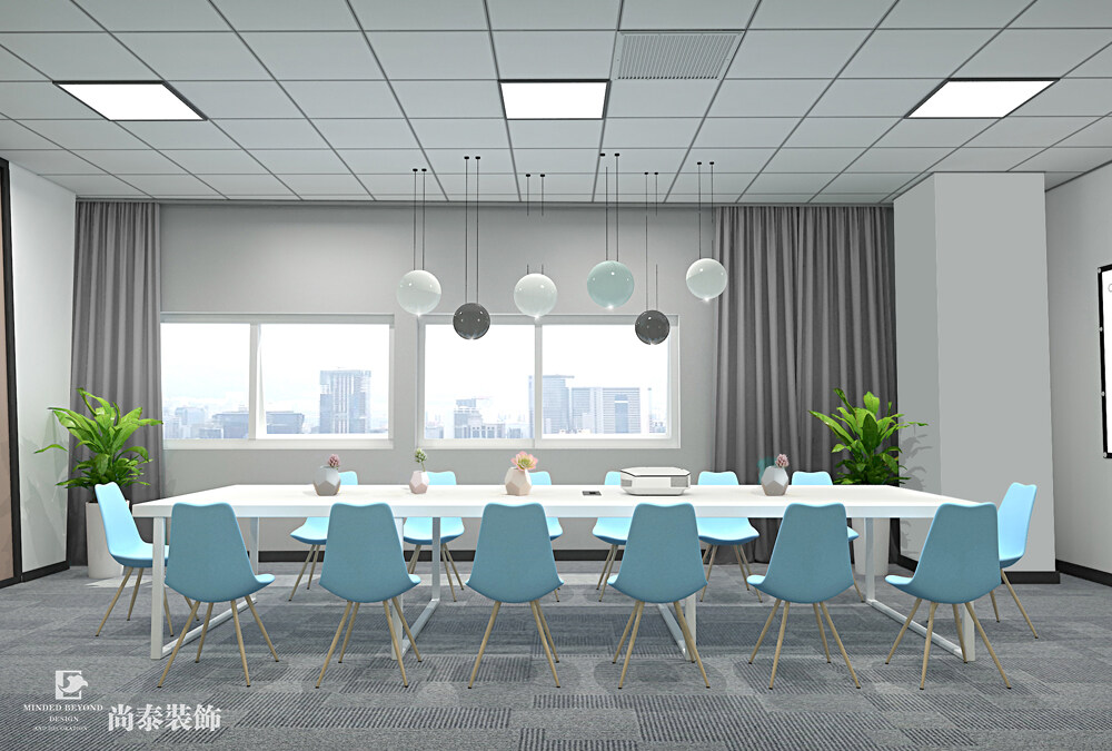 會議室的頂部石膏板和燈具為裝飾滿足了會議室功能的需求,空間寬敞明亮辦公空間裝修著重體現(xiàn)工作與生活的有機融合,簡潔而明亮地處理辦公區(qū)域,并用頂層噴漆進(jìn)行處理。