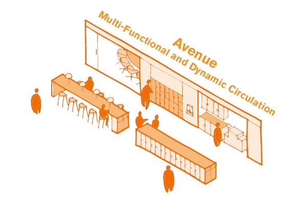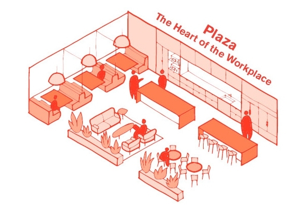 第二類是“廣場”,它更像是一個社區(qū),咖啡店、餐廳、工作區(qū)都存在,人們就像是城市中一樣,社交和工作可以同時發(fā)生,讓團隊更快的熟悉、更好的配合,尤其是那些剛剛結(jié)束遠距辦公回到辦公室的員工。