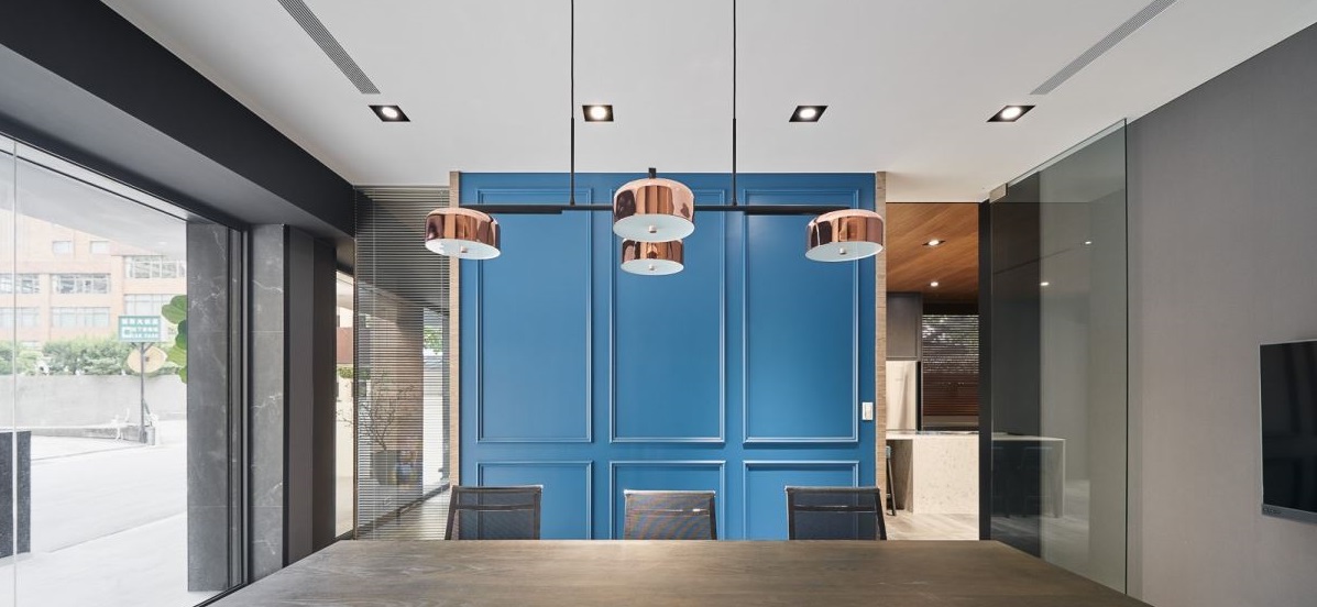 小編帶你看好宅 60 坪的 30 年老屋改建成現(xiàn)代風(fēng)商辦空間,設(shè)計師重整管線與格局、重新分配空間,并引入充足采光,搭配多元異材質(zhì)展現(xiàn)豐富層次,展現(xiàn)有別于制式商空的風(fēng)格視野,快跟著小編一起來看看吧! 建物外觀以黑色磚墻搭配銹蝕鐵門,展現(xiàn)略帶工業(yè)感的氣息,并于落地窗內(nèi)擺設(shè)庫柏力克熊公仔、隨時與行人打招呼,形成趣味景象;空間內(nèi)配置多座木作展示柜,呈現(xiàn)穿透造型、形塑延伸效果,并加入淺色木質(zhì),與木紋地板做呼應(yīng),挹注放松溫潤的氛圍,而會議室、辦公區(qū)則特別以藍色線板墻作視覺跳出,豐富整體表情;接待區(qū)設(shè)置了長型中島臺,以白色石材臺面搭配深灰色餐櫥柜,營造優(yōu)雅內(nèi)斂的品味!