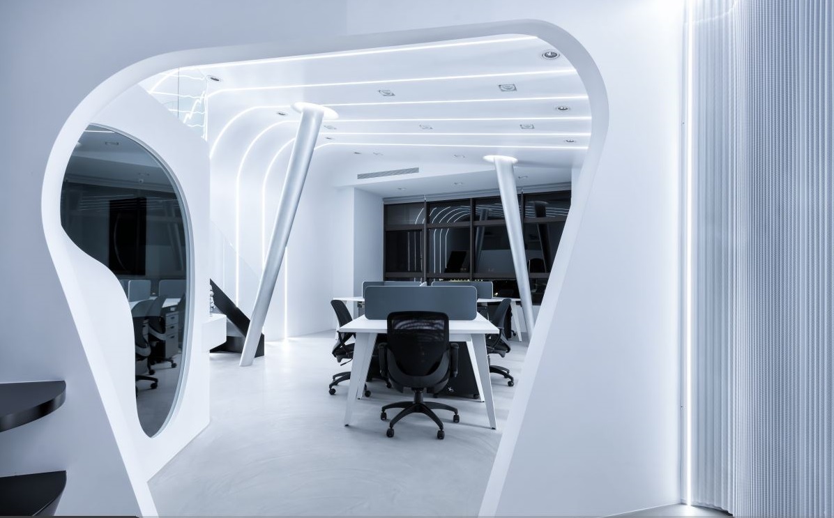 深圳尚泰裝飾的設(shè)計(jì)師運(yùn)用未來與太空艙為核心概念,融入 28 坪的商業(yè)空間,借由材質(zhì)的視覺與觸覺,打造一處仿佛穿梭至未來的辦公室。