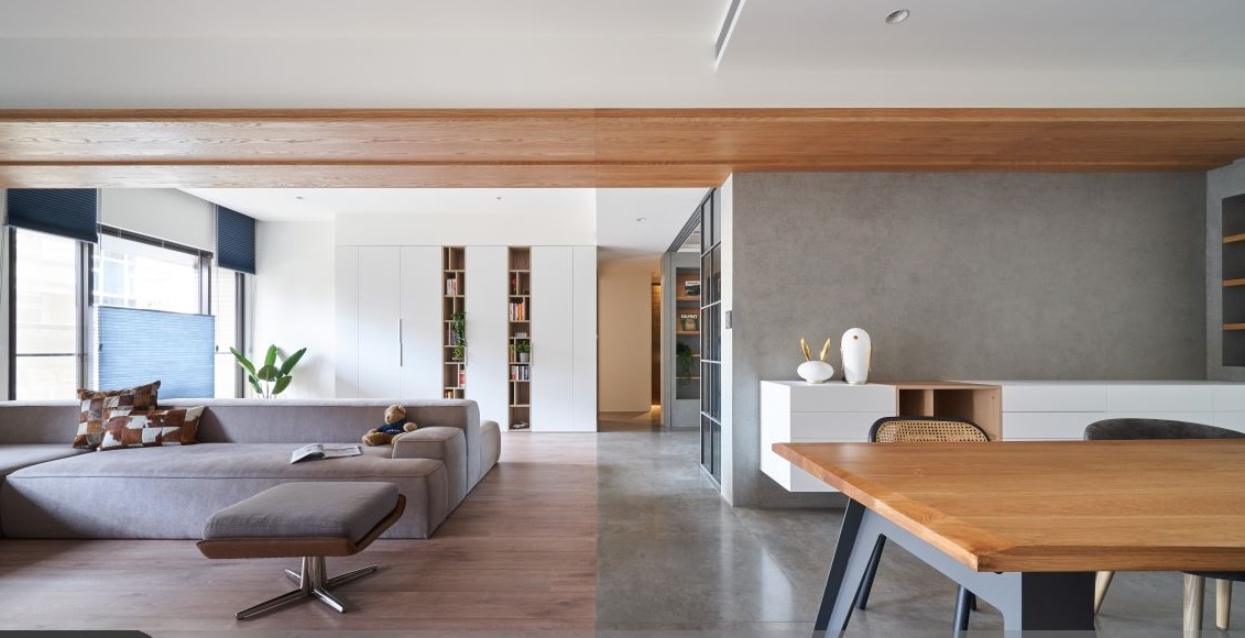 150平的現(xiàn)代風(fēng)居家,設(shè)計師利用暖色調(diào)打造居家場域,結(jié)合了工作室需求及簡約住家型態(tài),讓人可同時享有專心辦工的區(qū)域,及休閑放松的生活情境,快跟著小編一起來看看吧! 設(shè)計師將公共廳區(qū)范圍延伸拓大,獲得了視覺上的寬闊感,并融入天花板獨特造型,透過木質(zhì)調(diào)的延伸,自然地降低梁柱壓迫感,且無形串聯(lián)不同的居家領(lǐng)域,客廳則運用雙面沙發(fā)的擺設(shè)、打破傳統(tǒng)客廳風(fēng)貌,一端面向電視墻,另一端則朝向收納柜,串起不同的空間視角,促成更美好的對話互動,同時也借由地坪材質(zhì)劃分空間屬性,讓公領(lǐng)域之界清楚分明,并注入簡約清爽的用色,加以綠植的輕巧妝點,襯出紓壓的氣息; 而視覺可見的收納柜體,則盡可能透過色彩、材質(zhì)、位等搭配,呈現(xiàn)量體輕盈度,以穿透并不阻礙視覺開闊性的形式存在于生活中! 小編的最愛 書房,則以玻璃為門片,打造穿透性之馀也兼顧界定效果;而寢室內(nèi)則賦予流暢的動線,連貫臥眠區(qū)與更衣間之間的關(guān)系,形成更便利的使用情境!