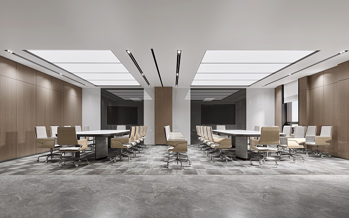 3、會(huì)議室作為多功能空間,其功能性必須得到充分考慮。深圳企業(yè)多元化,會(huì)議的類型各異,裝修應(yīng)充分滿足不同需求。通過(guò)可移動(dòng)隔斷墻、投影設(shè)備、音響系統(tǒng)等,可以使會(huì)議室在不同場(chǎng)合下靈活變化,既能承載大型演講,又能容納小組討論,確保了空間的高效利用。