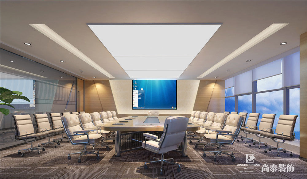 辦公室設(shè)計(jì)過程當(dāng)中有一個(gè)重要的地方,就是會議室。一個(gè)好的會議室裝修工程不亞于一個(gè)高檔次的家庭裝修,除了要考慮到空間感外,燈光和音響等相關(guān)的注意事項(xiàng)也是需要比較專業(yè)的人士進(jìn)行調(diào)控的。