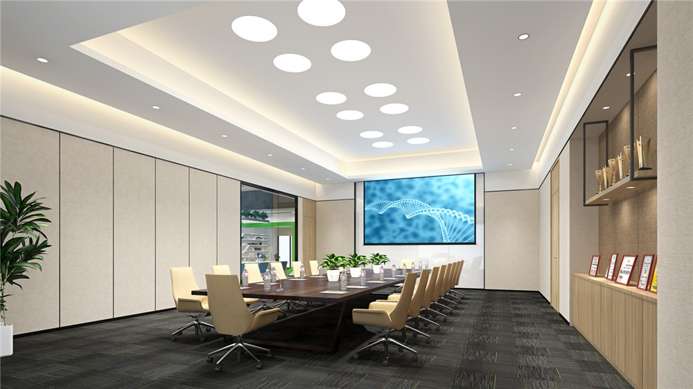 在辦公室裝修天花中布光要求亮度高,多數(shù)情況使用日光燈,局部配合使用簡燈。在設(shè)計(jì)中往往使用散點(diǎn)式,光帶式和光棚式來布置燈光,這樣既能增加光源布置的美感,也能滿足光照度的需求;
