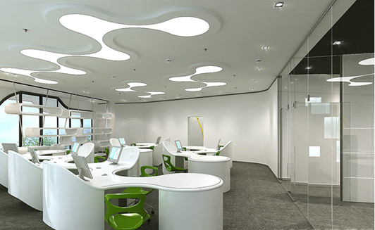 讓寫字樓給人一種明快感是辦公設(shè)計的基本要求。辦公環(huán)境明快是指辦公環(huán)境的色調(diào)干凈明亮,燈光布置合理,有充足的光線等,這也是寫字樓的功能要求所決定的。同時,明快的設(shè)計與環(huán)保理念也息息相關(guān),自然采光好不好是判斷的重要一點。