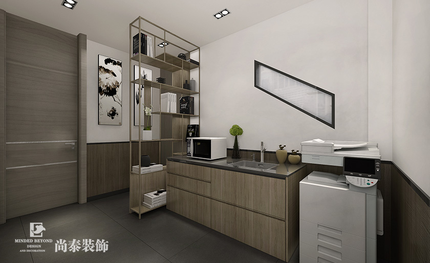 茶水間裝修設(shè)計(jì),不需要多大的空間,能夠放下飲水機(jī)、洗手臺(tái)、微波爐、冰箱等等必要品,但也要符合整體的設(shè)計(jì)風(fēng)格,可以將它設(shè)計(jì)在某一個(gè)與辦公區(qū)等等地方相互阻礙的地方即可。