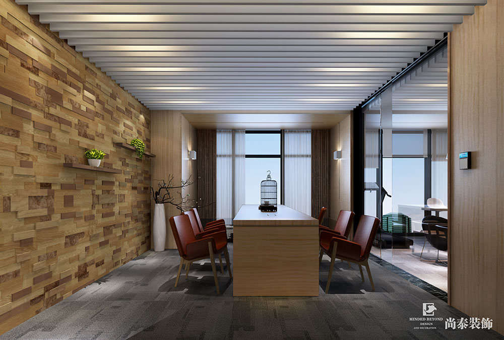 中式風(fēng)格辦公室裝修比較注重空間的層次,可以根據(jù)辦公室的空間大小,對(duì)辦公室的空間進(jìn)行分隔,可以選用博古架或者啞口這類充滿中式元素的物品來區(qū)分,在需要屏蔽視線的地方,可以選用屏風(fēng)或者窗欞來進(jìn)行分割,盡顯辦公室的層次之美。