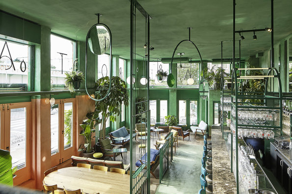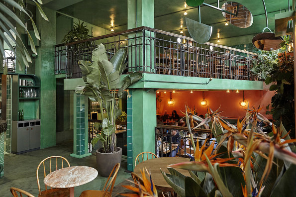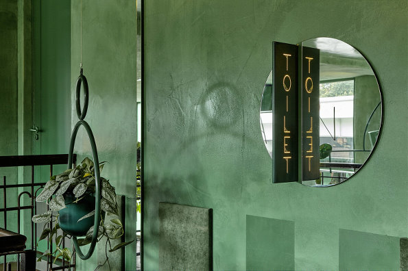 解讀一下,這種熱帶雨林的元素來自于幾個方面,綠色、植物、叢林感以及精心的布置布局。層高帶來的透亮,像叢林上方照進的陽光,似有似無,隨著日光的方向而變化,天花板上的鏡子反射出風景,看到有趣的異世界。
