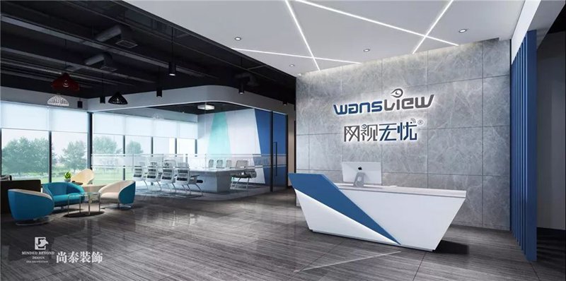 尚泰設(shè)計師通過調(diào)研得知“網(wǎng)視無憂”的品牌Logo有諸多深刻的釋義,于是便提取了品牌Logo中的灰色和藍色作為空間主色調(diào),并將其中蘊含的企業(yè)價值和文化滲透到設(shè)計當中...