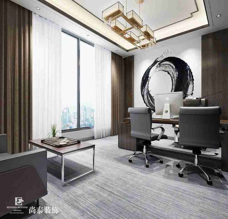 總經(jīng)理/總監(jiān)室/部門獨立辦公室則透露出成熟穩(wěn)重的風范,中式潑墨掛畫等中式元素結(jié)合灰白色調(diào)為整個空間增添了幾分質(zhì)感,使空間利落有格調(diào),彰顯不凡品味及嚴謹性。