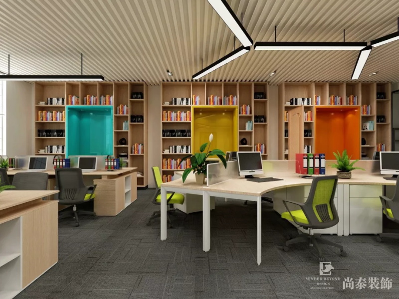 本案作為現(xiàn)代簡(jiǎn)約時(shí)尚風(fēng)格的網(wǎng)紅直播IT辦公室,尚泰裝飾的設(shè)計(jì)定位即是簡(jiǎn)潔時(shí)尚與科技感,通過部分鮮艷的軟裝搭配結(jié)合天花燈光效果,營造出一個(gè)現(xiàn)代感極強(qiáng)的辦公氛圍。