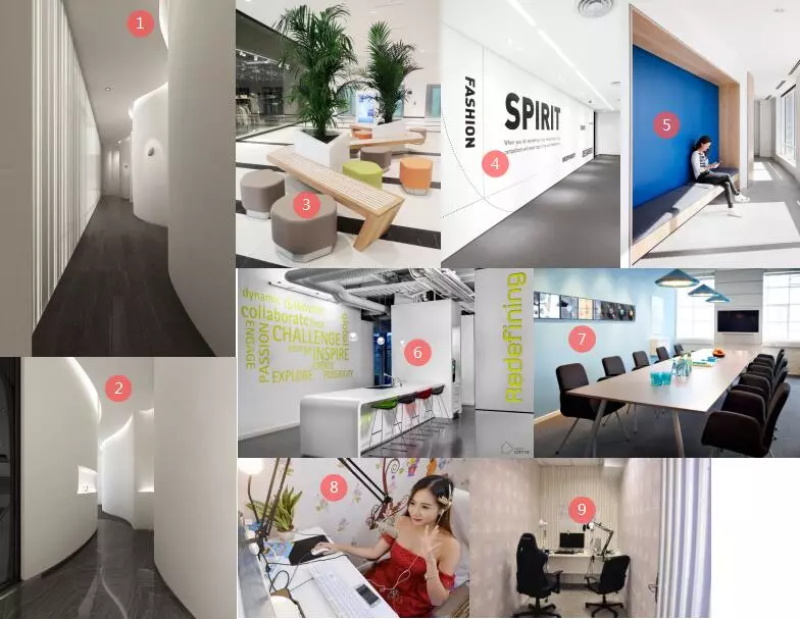 玻璃材質(zhì)的運(yùn)用,進(jìn)一步貼切了關(guān)于“時(shí)尚”的主題。玻璃作為21世紀(jì)最主要的建筑材料之一,總能讓人產(chǎn)生出不一樣的念想,但凡優(yōu)秀的簡(jiǎn)約時(shí)尚辦公室,無一不與玻璃材質(zhì)掛上鉤,但全部使用玻璃又難免千篇一律,為此尚泰裝飾團(tuán)隊(duì)在設(shè)計(jì)的時(shí)候,通過石膏板隔墻的留白、上漆與玻璃隔斷產(chǎn)生一種質(zhì)的碰撞,進(jìn)一步凸顯了我們想為品效合一表達(dá)的東西——時(shí)尚。