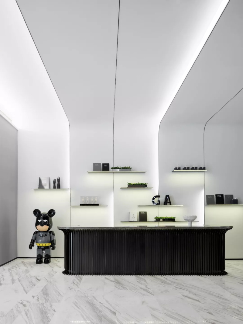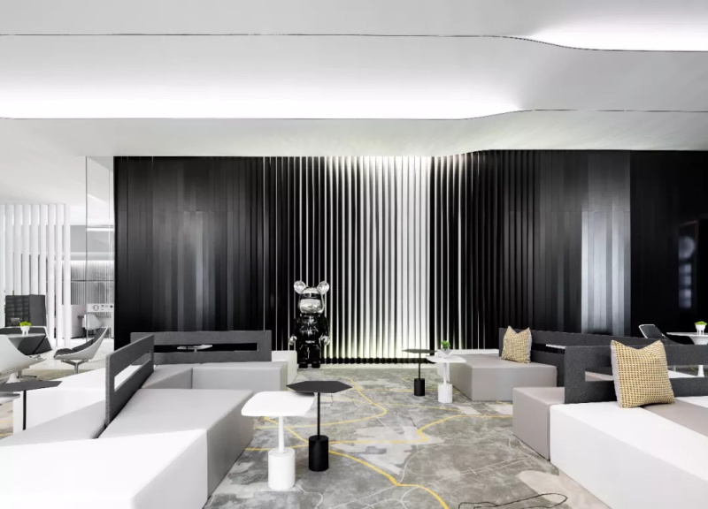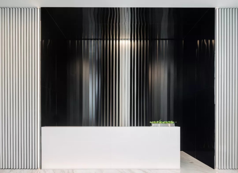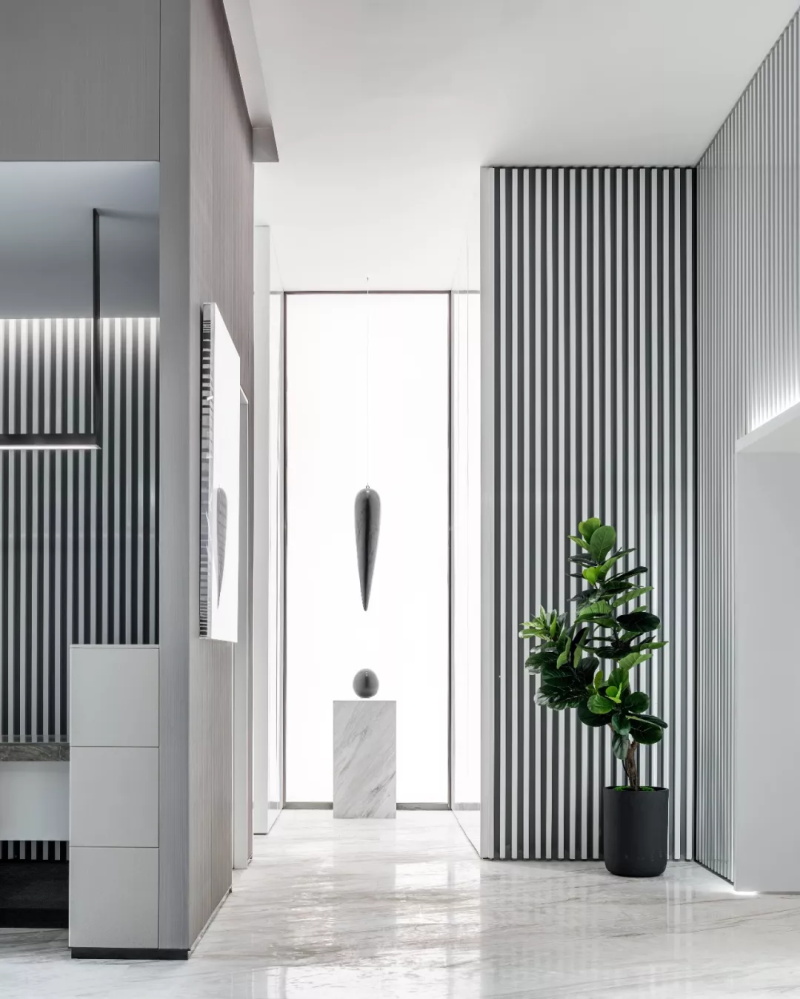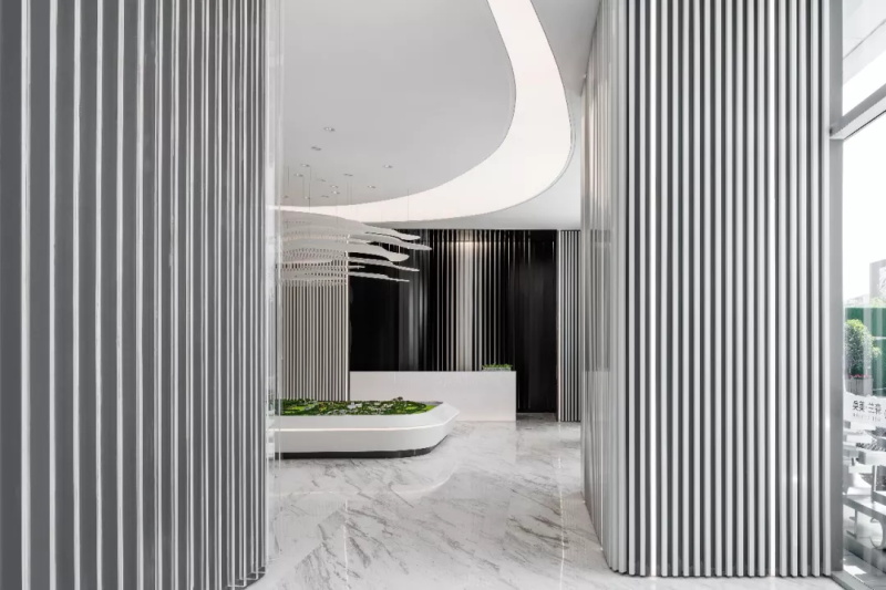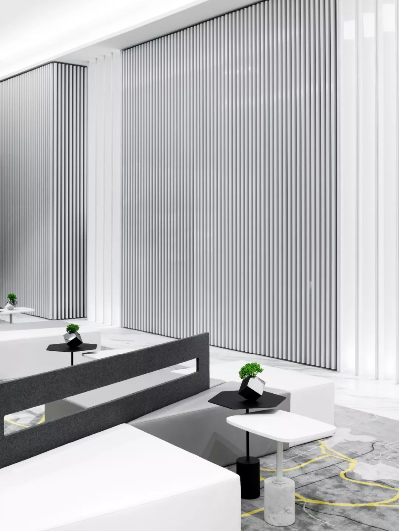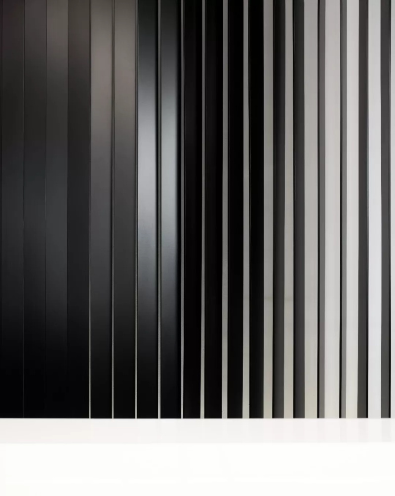 漸變過渡的繪畫手法調(diào)和黑白鋁條單一的色彩,色彩的纏綿將空間質(zhì)感研磨到極致。