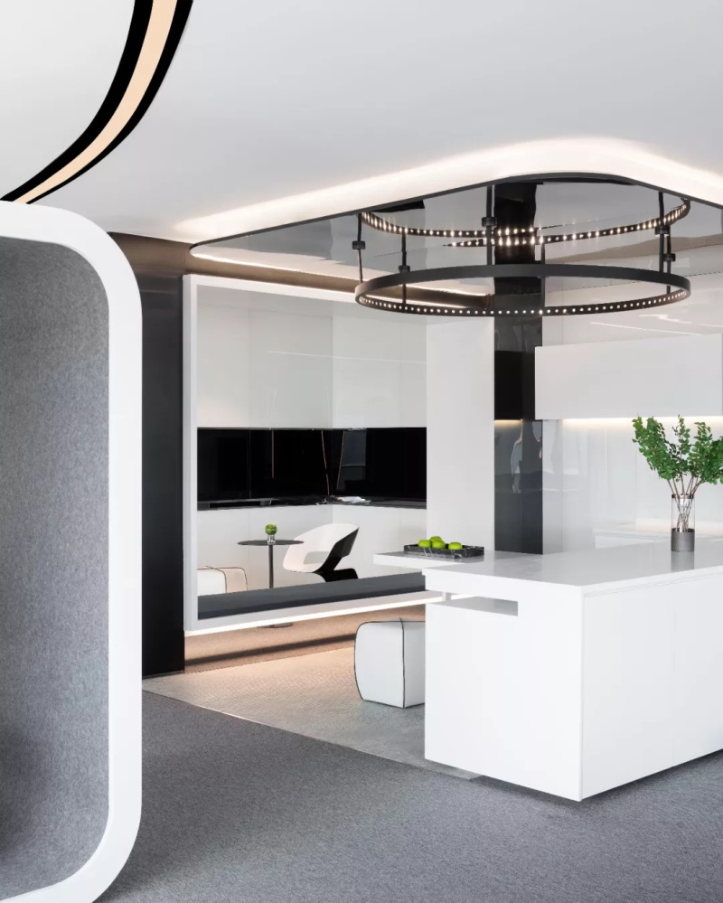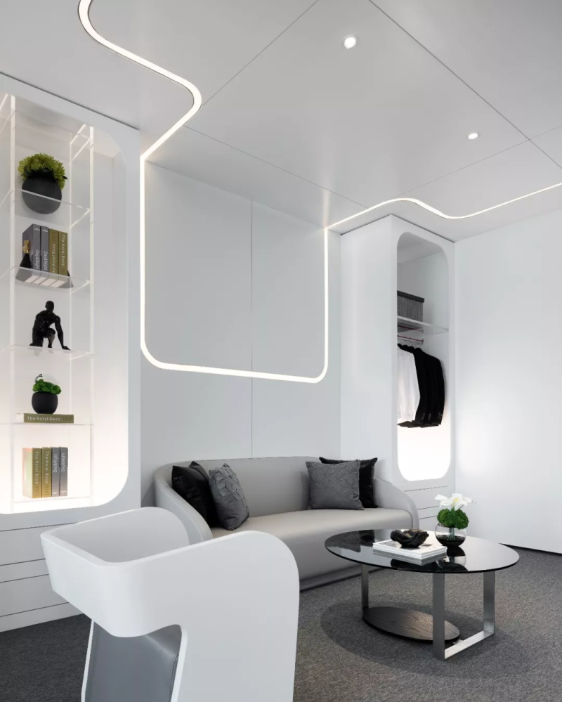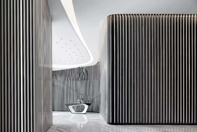 沿弧線蔓延的四束光帶,如同旋律中的滑音符,奏出冷靜流暢的空間氣質(zhì)。