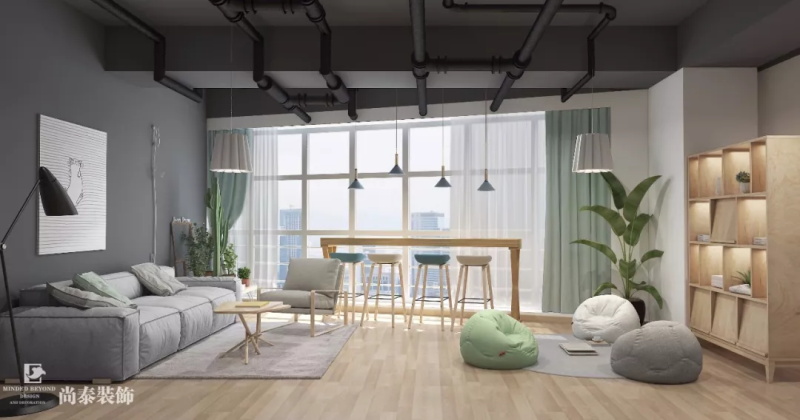 結(jié)合北歐風(fēng),營造出家的舒適性,適合員工在午休時來到此放松疲勞的神經(jīng)和看書充電。小休息區(qū)相對隨意,不拘謹(jǐn)。