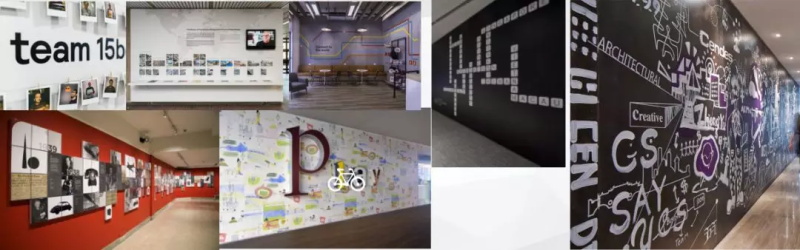 走道根據(jù)企業(yè)文化,制作創(chuàng)意涂鴉手繪,利用公司二維碼分散造型在辦公區(qū)外墻,現(xiàn)代科技感,國際化。