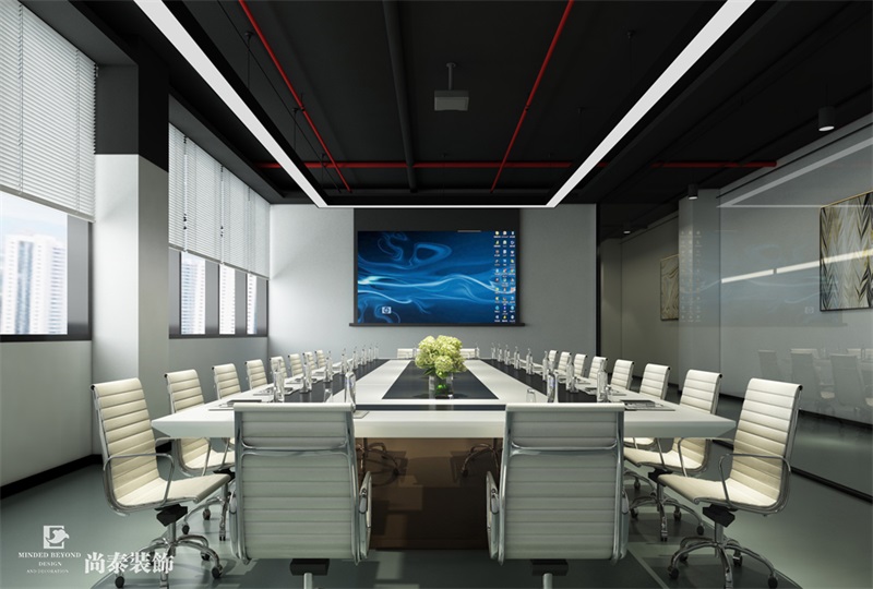 大會議室作為一個集中以及接待的區(qū)域,以灰白色為主調色,在布置方面更為大氣,強調空間的儀式感。