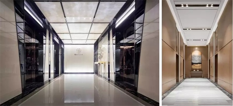 前廳區(qū)域背景用白色烤漆玻璃,而天花和地面選用白色調(diào)的漆和瓷磚,從電梯廳看過來用一種明亮的感覺!再搭配一點黑色不銹鋼線條,使空間更有層次!以及體現(xiàn)質(zhì)感的冷色系材質(zhì)進行空間裝飾和搭配。主光源選用高色溫帶來的是一種清涼奔放的氣息,再搭配局部的低色溫點光源,加上墻面的白玻和地面的瓷磚的發(fā)射,讓空間得到延伸.
