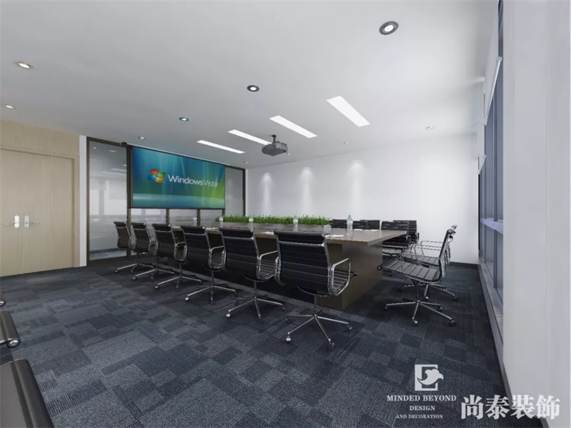 會(huì)議室,平時(shí)是為了公司的召開會(huì)議,只要是對問題的解決和討論,設(shè)計(jì)師使用了大量的白色,來明亮員工在開會(huì)的激情,煥發(fā)設(shè)計(jì)人員對公司的管理和設(shè)計(jì)方案的創(chuàng)新思維,地面使用灰色的地毯來穩(wěn)定空間的作用和減低在開會(huì)時(shí)候人員的出入的聲音,裝飾盡量簡潔。