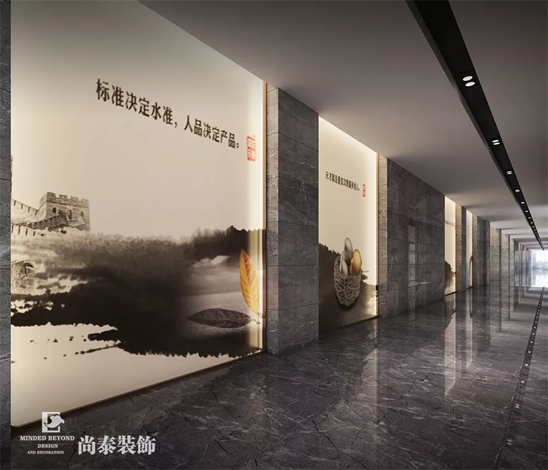 公司走廊過道在設(shè)計(jì)的時(shí)候,同樣也是采用了大理石為主要的墻面和地板,讓整體空間低調(diào)中透露著奢華,另外在墻壁上嵌入了裝飾柜,彰顯了不凡的品味。