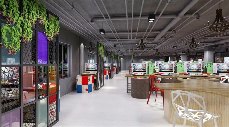 休閑區(qū)不單單是員工飲食的場(chǎng)所,同時(shí)也是讓員工感到舒適和輕松的地方。另一方面也是體現(xiàn)公司家文化的場(chǎng)所之一。設(shè)計(jì)師的設(shè)計(jì)理念是采用暖色的燈光,多處點(diǎn)綴了暖彩色,在中央上設(shè)計(jì)了一個(gè)吧臺(tái),兩側(cè)則是布置了布藝沙發(fā),有助于員工緩解疲勞。
