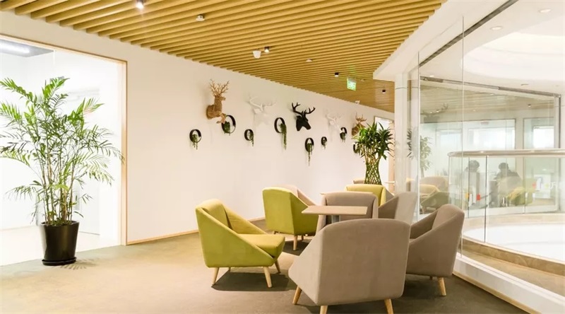 辦公區(qū)是每天員工從事腦力活動(dòng)的場(chǎng)所,員工每天都需要在這邊為公司創(chuàng)造價(jià)值,所以在設(shè)計(jì)的時(shí)候需要格外用心。設(shè)計(jì)師經(jīng)過溝通,整體的色調(diào)采取了當(dāng)下最流行的“環(huán)保色”綠色,另外在走到附近采用了小面積的植被綠化帶,使得員工在高強(qiáng)度的工作下可以活躍思維,提高整體的企業(yè)效率。