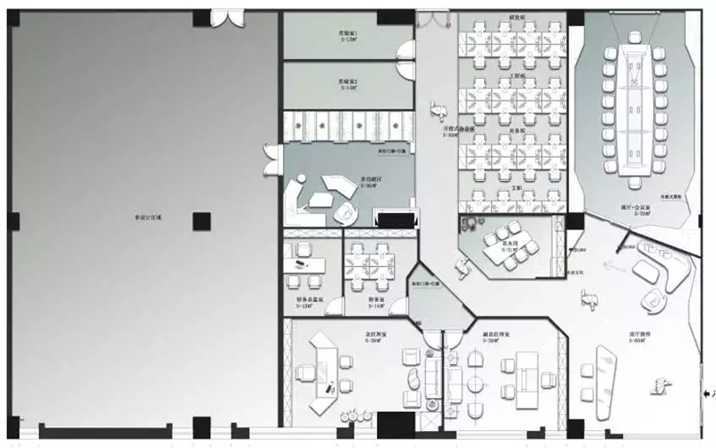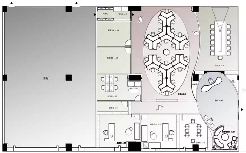 在平面功能規(guī)劃上,尚泰裝飾團(tuán)隊(duì)合理的考慮了人的動(dòng)線設(shè)計(jì) ,人機(jī)體驗(yàn),通風(fēng)采光,消防安全等需求,為埃森智能科技提供了3套不同的設(shè)計(jì)方案,既有戶型方正的簡(jiǎn)潔大方,也有異形的科技感,更有弧形的柔和靈動(dòng)。
