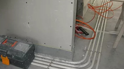 在濕區(qū)進(jìn)行輕質(zhì)隔墻施工時(shí),為阻隔地面濕氣對(duì)隔墻的影響,采取地面混凝土止水帶工藝,并采用鍍鋅輕鋼龍骨作為隔墻基層,確保墻體無(wú)霉變與乳膠漆脫落。