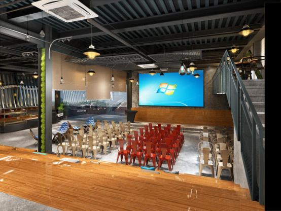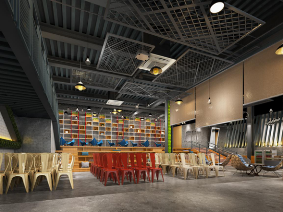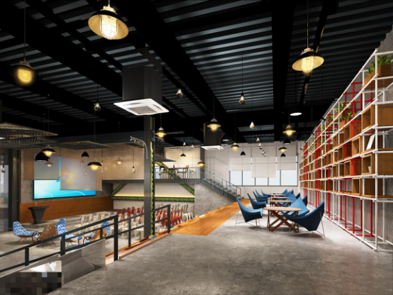 黃老師:在與客戶溝通的過程中,他們希望打造一個(gè)高品質(zhì)、人性化、創(chuàng)業(yè)氛圍濃郁的創(chuàng)客空間,我們決定采用當(dāng)下頗為流行的工業(yè)風(fēng)格。整體設(shè)計(jì)出了集辦公、路演、休閑、活動(dòng)、展示、讀書、玩耍等功能為一體的綜合型空間,甚至還有母嬰室、兒童滑梯、吸煙區(qū)、咖啡吧等超人性化分區(qū),呈現(xiàn)活躍與感染力的設(shè)計(jì)神韻。