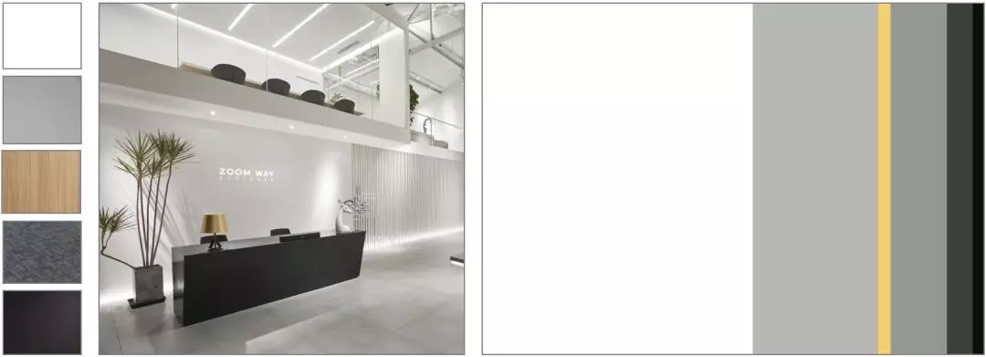 空間整體色調(diào)以黑、白、灰為主,局部采用跳躍色進(jìn)行點(diǎn)綴,配合冷色系列的燈光,營造明朗舒適的氛圍,突出科技時(shí)尚感,讓整個(gè)空間更具靈動(dòng)性。