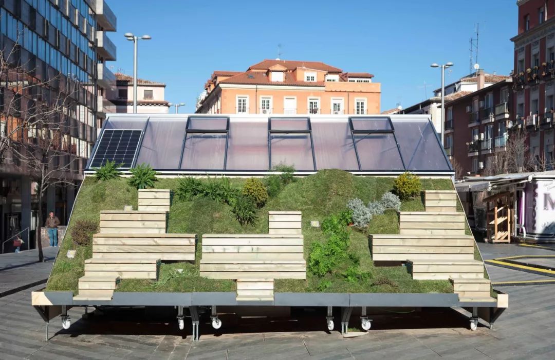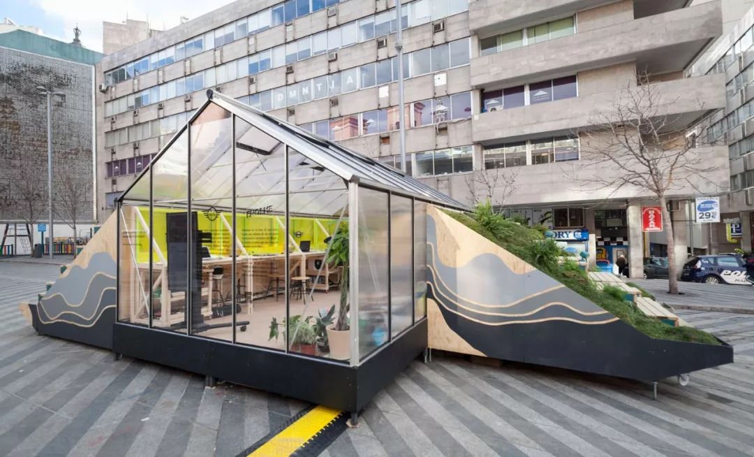 在封閉的環(huán)境里待的時(shí)間越久,人就越容易與外界隔絕,處于“封閉”自我的狀態(tài)?;蛘哒f是忙于工作,而不再有閑心再去觀察環(huán)境、觀察世界,外界環(huán)境對(duì)于人的影響能力也會(huì)降低。為了加強(qiáng)人與環(huán)境的聯(lián)系,西班牙馬德里的辦公設(shè)計(jì)開始尋求一種,通過城市移動(dòng)辦公的方式,讓人與環(huán)境緊密結(jié)合。這個(gè)位于馬德里圣瑪瑞斯廣場(chǎng)的裝置,叫做montaanla Luna launcher,其展示出了一個(gè)可移動(dòng)辦公室設(shè)計(jì)的空間理念,它就位于街道上,在用戶中間,成為了這個(gè)城市里獨(dú)特而不可或缺的一處風(fēng)景。