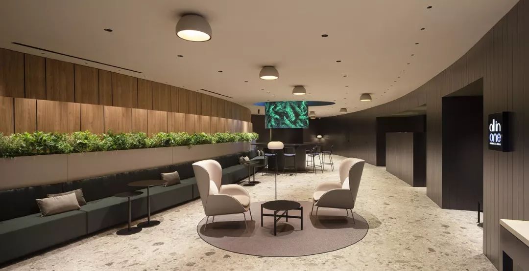 只有前面那些還不夠!還有室內多種多樣吊頂休息、會客空間也要運用數(shù)字化媒體綠化,在客戶和員工洽談的時候,可以擁有更棒的空間體驗感,橢圓形的大型垂直屏幕、“蘑菇”休息亭,將自然概念貫徹到底。