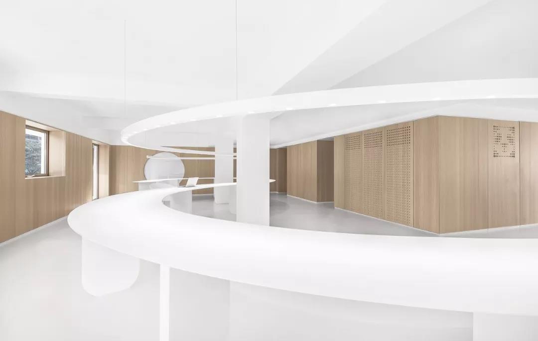 相信有很多同學(xué),一看到這個辦公室就會愛上了!優(yōu)美的白色曲線在空間內(nèi)飄動,上為照明下為辦公,互為協(xié)同下的靈動舒適辦公空間!