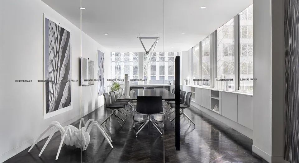 會(huì)議室設(shè)計(jì)的一大亮點(diǎn)是趴在地上的白色大型蜘蛛,增添藝術(shù)感的同時(shí)也頗具趣味,和黑色的地板形成明確反差。另一會(huì)議室則采用光滑的屏幕墻,營(yíng)造時(shí)尚、科技感的會(huì)議室,同時(shí)還給配備了顯示器,既可展示3D設(shè)計(jì)、共享3D PDF文件,又可生成3D模型來(lái)記錄重要的交流過(guò)程。