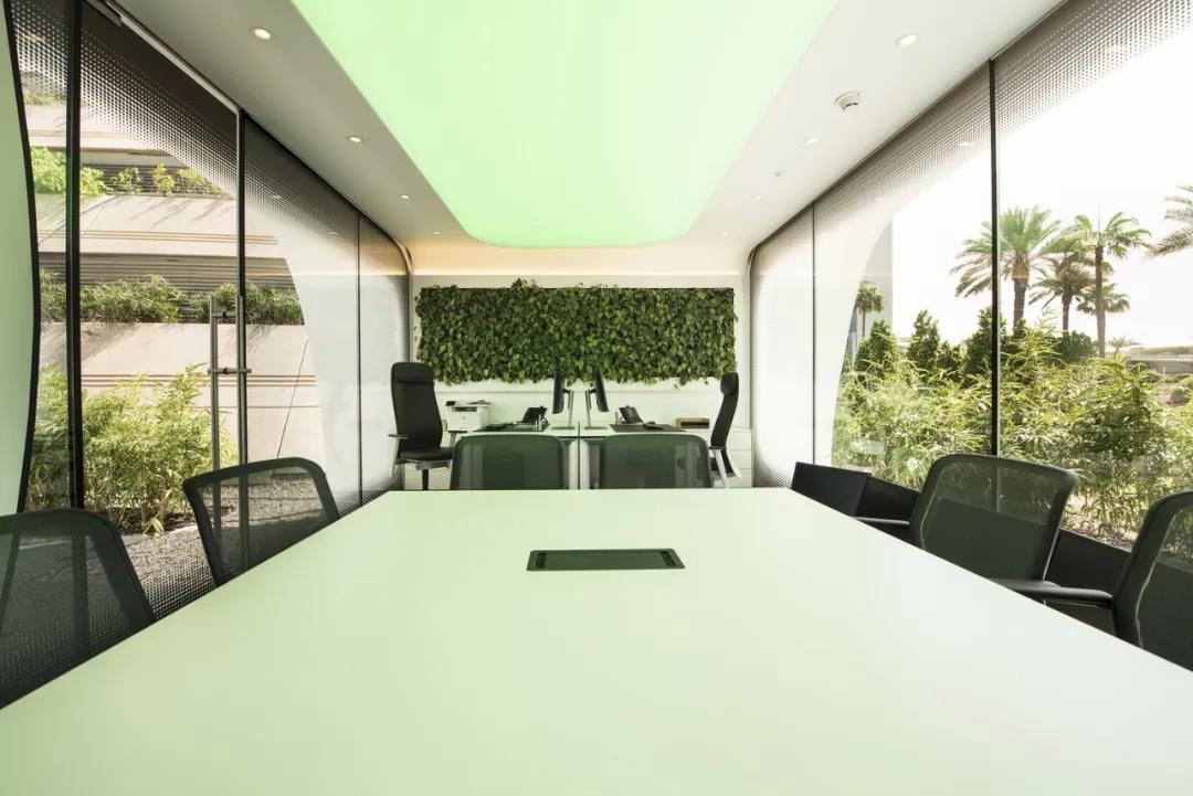 會(huì)議室的大面積窗戶將外面的綠意帶入到室內(nèi),這間辦公室經(jīng)過了專業(yè)測(cè)試,墻體比傳統(tǒng)建筑堅(jiān)固5倍,是可以長(zhǎng)久使用的辦公室!