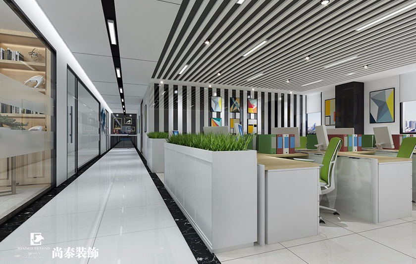 整齊排列的辦公家具突出了現(xiàn)代辦公環(huán)境講究效率的特征,多彩的裝飾物將現(xiàn)代、創(chuàng)意。活力等特點巧妙地融入到環(huán)境中。